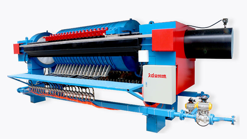 金凱地自主研制具有國際專利的廂式高壓壓濾機,機架、濾板、高壓液壓泵成套高壓專利設(shè)計,結(jié)構(gòu)優(yōu)化,采用優(yōu)質(zhì)鋼材,可靠耐用,可承受2.0Mpa壓強,設(shè)備自動化程度高,自動進料,自動翻板,自動拉板卸料,可根據(jù)物料情況對油缸壓力、過濾時間、物料干度要求及系統(tǒng)各部分操作單元進行實時全自動控制調(diào)節(jié)或?qū)δ硞€部分單元進行單獨控制;操作簡單;